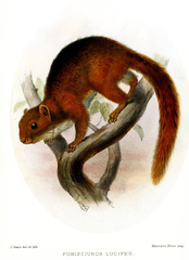 The Black and Red Bush Squirrel (Paraxerus lucifer) is a species of rodent in the Sciuridae family. It occurs in Malawi, Tanzania, and Zambia. Its natural habitats are subtropical or tropical moist montanes, subtropical or tropical dry shrubland, and subtropical or tropical dry lowland grassland.