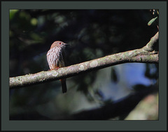 The Rubeho Akalat, Sheppardia aurantiithorax, is a member of the Old World flycatcher family (Muscicapiidae), known from the Eastern Arc of Tanzania. Akalats trapped in 1989 here were assumed to be an isolated population of Iringa Akalat which occurs c. 150 km to the south, but further specimens collected in 2000 led to the description of the bird as a new species. The ...more ↓