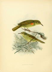 The Beautiful Sunbird, Cinnyris pulchella (formerly placed in the genus Nectarinia), is a sunbird. The sunbirds are a group of very small Old World passerine birds which feed largely on nectar, although they will also take insects, especially when feeding young. Flight is fast and direct on their short wings. Most species can take nectar by hovering like a hummingbird, ...more ↓