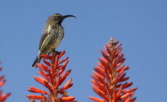The White-breasted Sunbird (Nectarinia talatala) is a species of bird in the Nectariniidae family. It is found in Angola, Botswana, Democratic Republic of the Congo, Malawi, Mozambique, Namibia, South Africa, Swaziland, Tanzania, Zambia, and Zimbabwe.